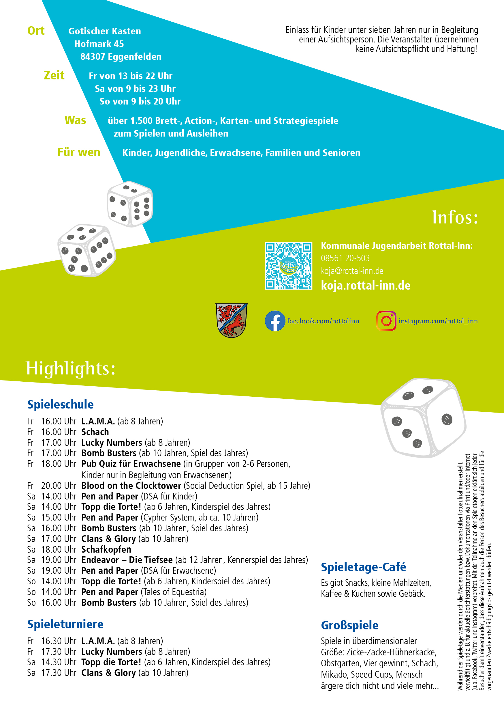 Die Spieletage stehen wieder vor der Türe! Die Kommunale Jugendarbeit Rottal-Inn organisiert die Spieletage dieses Jahr vom 14. bis zum 16. November in Gern, Eggenfelden.